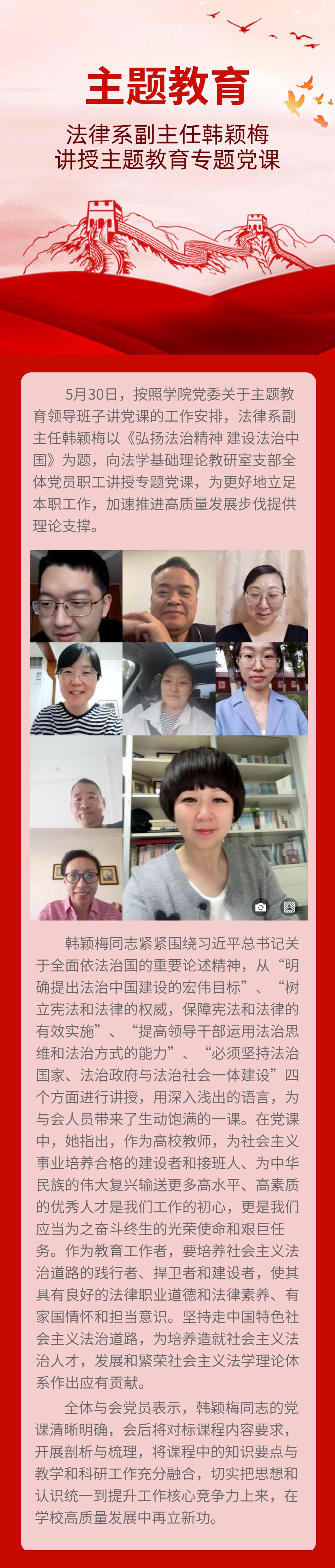 【专题党课】法律系副主任韩颖梅讲授主题教育专题党课