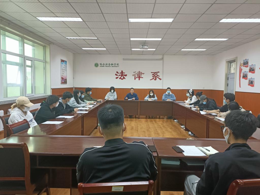 2022年10月2日下午,法律系在会计楼611召开了新任团总支干部第三次全体会议。会议由党总支副书记陶雷主持,团总支副书记张琬笛、汪振华,团总支委员王昱婷,团总支各部门部长、副部长等18人参加了现场会议;团总支委员石若霖、办公室副主任刘晨辉、社会实践部副部长袁欣睿等3人参加了线上会议。