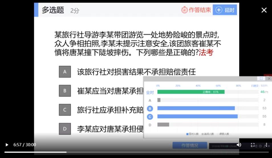 大部分教师能够维持良好的在线课堂秩序,法律系全体授课教师通过线上教学互动设计和线上讨论等方式引导学生积极参与线上教学并能够将课程思政有效融合到课程之中。