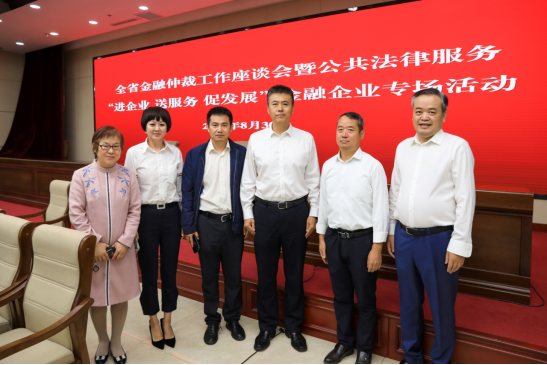 为深入开展学习贯彻习近平新时代中国特色社会主义思想主题教育,落实省委省政府打造市场化法治化国际化营商环境的决策部署,8月30日省司法厅联合省地方金融监督管理局、中国人民银行黑龙江省分行、国家金融监管总局黑龙江分局、黑龙江证监局召开金融仲裁座谈会暨公共法律服务"进企业 送服务 促发展"金融企业专场活动,全省110家金融机构和行业协会参会。作为唯一高校代表,我校受邀参加此次活动,副校长黄强、文法学院院长韩颖梅,文法学院教师白化秋、郝胜林等相关专家学者参加座谈会并现场开展金融法律服务。