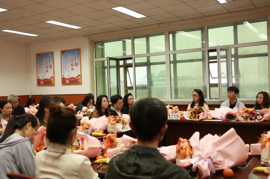 韩颖梅院长高度评价了三位教师的发言,同时分享了自己的经验和体会,她指出,教师对职业要无比热爱,倍加珍惜,对学生要拿出真心耐心,对业务要不断探索进取。党总支书记兼分工会主席朱天波在讲话中指出,当前,教师要深入贯彻落实党的二十届三中全会精神,做党和人民满意的“四有”好教师。教师们听得认真,感慨良多,大家在自由发言中,谈工作、聊生活,会场气氛轻松和谐。