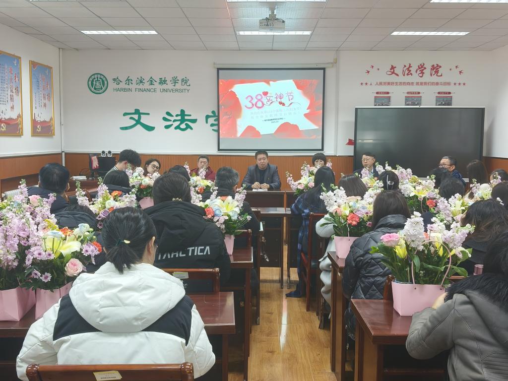 会议由文法学院党总支书记朱天波主持,院长韩颖梅对全体女教师致以节日的问候和美好的祝愿。