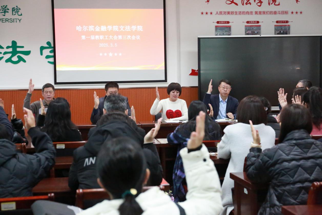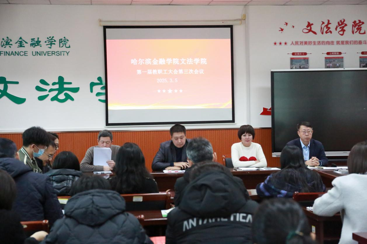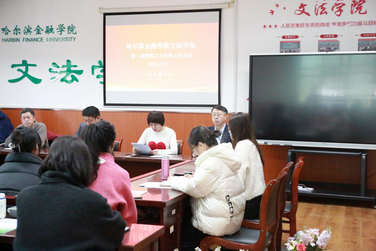 文法学院第一届教职工代表大会第三次会议于3月5日胜利召开。党总支副书记陶雷主持开幕式,院长韩颖梅作《文法学院2024年度工作报告》、在全体教职工的共同参与下,大会顺利完成了各项议程,取得圆满成功。